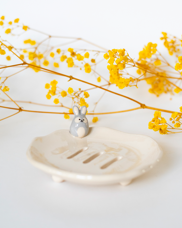 Porte-savon lapin gris